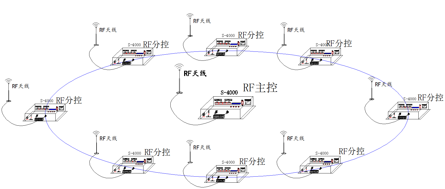 3、S-4000同时使用无线射频同步和GPS/BDS卫星信号同步;分区域管理,区域内无线射频同步,区域间卫星GPS/BDS卫星信号同步。