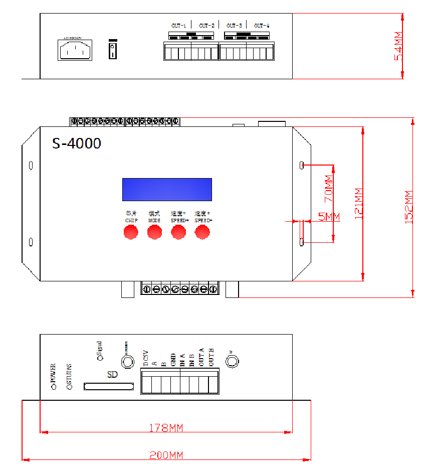 4、播放内容存放在SD卡中,SD卡内最多可存放32个效果文件,SD卡容量支持128MB-32GB。