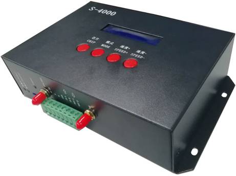 6、内置效果支持带载灯具为3通道(RGB)和4通道(RGBW)像素点,增强TTL和485差分(DMX)信号输出; 控制器自带22种测试效果,并且内置效果也可以实现同步播放。