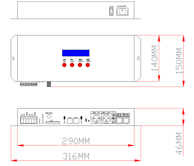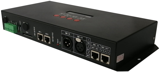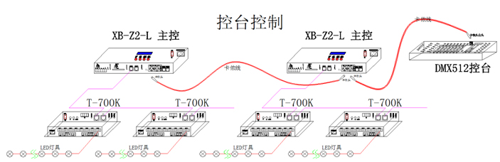 6、DMX512控台通过卡侬头线或者网线连接控制器,由控台发送命令调控-控制器模式、速度、灯具颜色变化等。